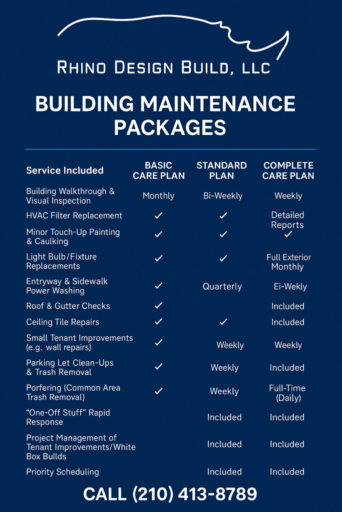 Owning a commercial property in San Antonio is a long-term investment, and its value is directly tied to how well it is maintained. Regular maintenance and strategic upgrades not only keep your building safe and functional but also elevate its overall appeal and marketability. From refreshing common areas and modernizing tenant spaces to ensuring full code compliance, consistent upkeep demonstrates that your property is professionally managed.
